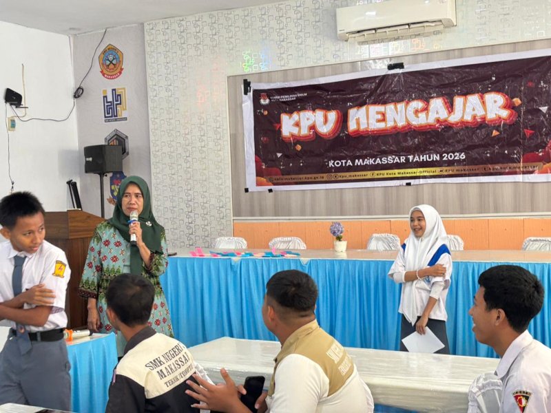 MAKASSAR, kpu.go.id – KPU Kota Makassar kembali melanjutkan program KPU Mengajar, guna memberikan pendidikan demokrasi dan politik bagi pemilih pemula di SMK Negeri 3 Makassar, selasa (10/2/2026). Kegiatan ini dibuka secara resmi oleh Wakil Kepala Sekolah Bidang Humas, Mappa, S.Pd, dan diikuti dengan antusias oleh siswa-siswi perwakilan dari seluruh jurusan.