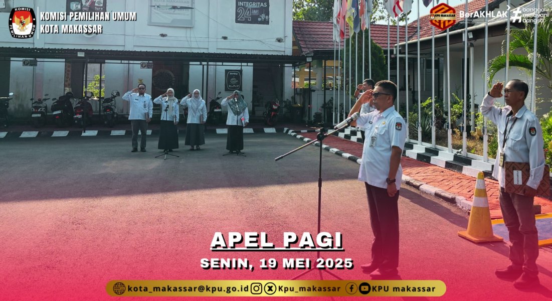 Makassar, kota-makassar@kpu.go.id,- Jajaran Sekreatriat KPU Kota Makassar melaksanakana apel pagi rutin pada hari senin (19/05/2025) bertempat dihalaman kantor KPU Kota Makassar. Apel ini dipimpin oleh Sekretaris KPU Kota Makassar Asrar diikuti oleh Para Kasubag dan seluruh jajaran Sekretariat KPU Kota Makassar. (humas)