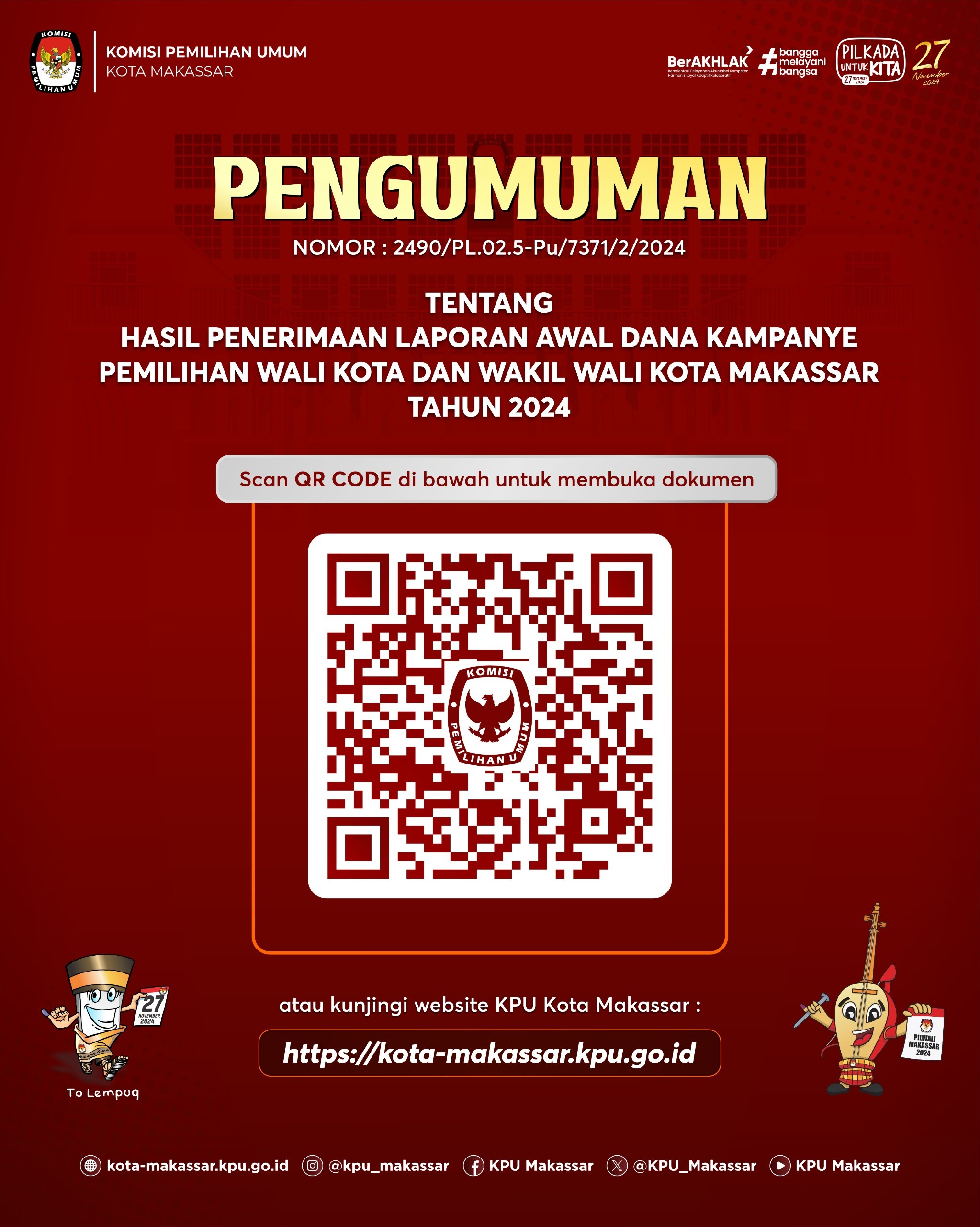 Selanjutnya Salinan Keputusan KPU Kota Makassar, silahkan undah dan lihat pada link dibawah ini :