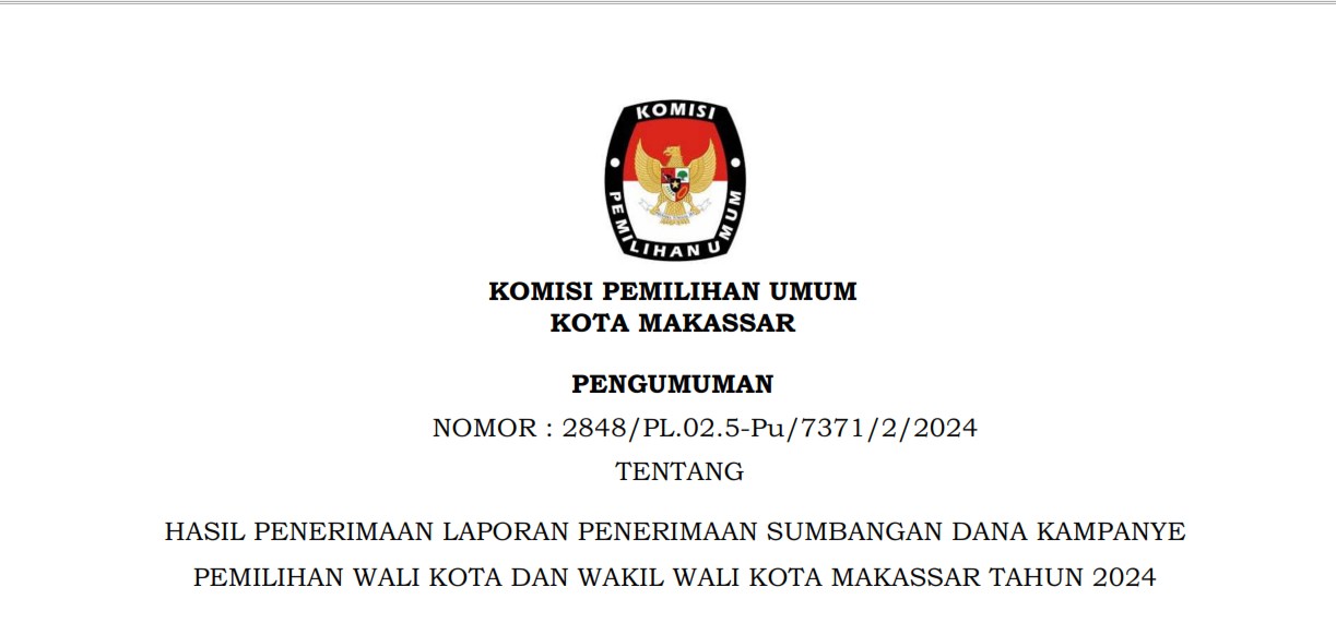 Berdasarkan Keputusan Komisi Pemilihan Wali Kota dan Wakil Wali Kota Makassar Nomor 2080 Tahun 2024, tentang Penetapan Hasil Pemilihan Wali Kota dan Wakil Wali Kota Makassar Tahun 2024